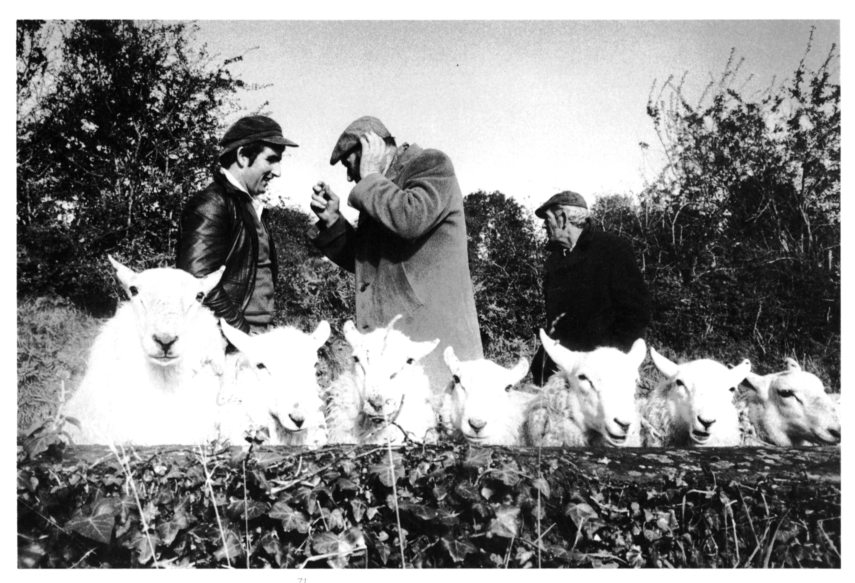 After breakfast the two heifers that have been in the byre overnight are taken out into the yard. We can see and hear the others and their cattle coming down the hill past Clancy’s lane, a short distance away. We drive our two flighty heifers down to the road, covering their run into the open field. When they join the others theyshould quickly settle down or maybe the whole lot will take off at speed and give us a good run.