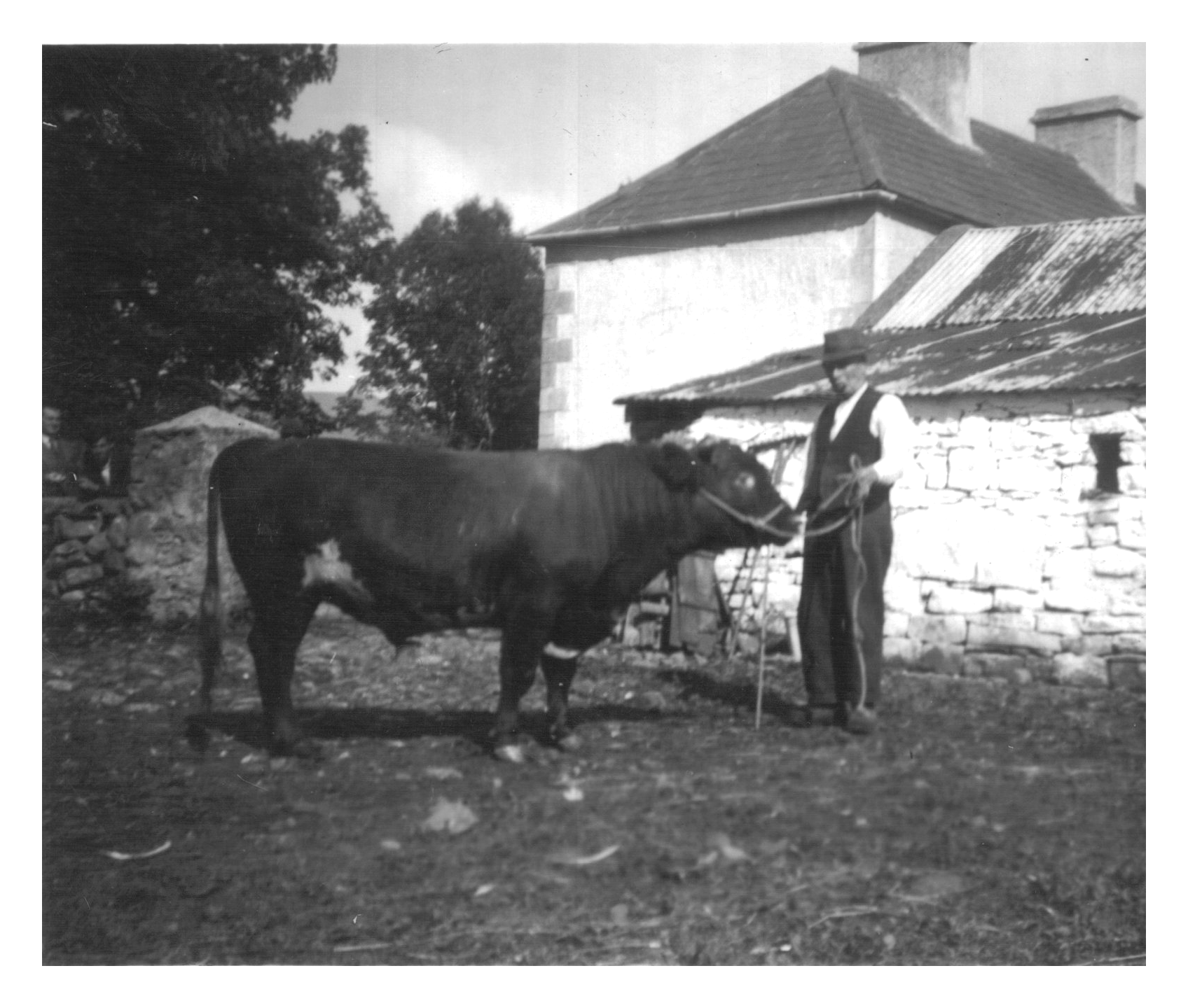 From the house on the hill Granny in her dark apron comes rushing across the field; hearing the commotion she is panicked by what she imagines has happened. I see Uncle Cecil’s other heifer lying on the road among the remaining cattle and further along a group bent over the injured man at the road side. A car has stopped beside them, it’s door open. There’s a stile across the stream at the road and we are ushered across it, up the field and back to the house. I see nothing else of the carnage.