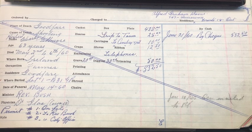Bertie died intestate. Very recently his niece Etta Kerr sent me a copy of the distributions from his small estate. From it I gathered that he lived in Goodfare, Alberta. Yesterday afternoon I typed “Goodfare, Alberta” into Google maps and then looked for a possible burial location, the search brought me to Oliver’s Funeral Home in Grand Prairie. With no clear intent I sent message to them on their Contacts page and the following email conversation ensued.