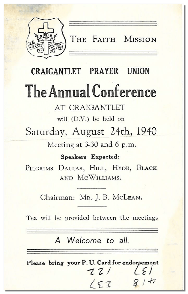Since its formation after the Christian Revivals of the mid-1800s The Faith Mission had organised summertime tent missions. Tommy led some of these services, took bible study and welcomed those willing to commit to their lives to God. His rich tenor voice leading the hymn singing perhaps turned as many heads as his preaching.