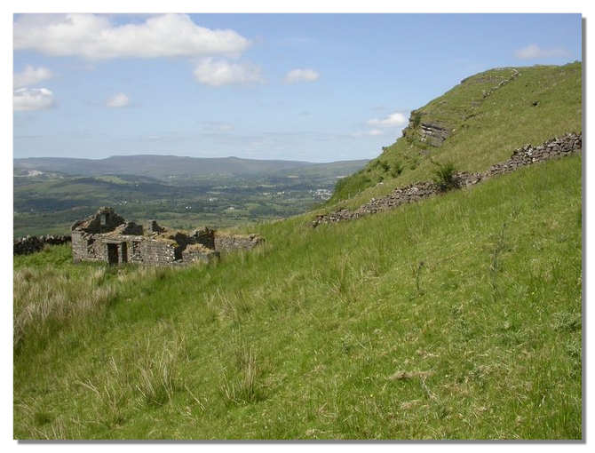 Some distance up and close to the track, “Flynn’s Line” to some, is the ruin of a family cottage of that name. It stood on five meagre acres of rough mountain land. If they made it through the famine, they didn’t stay much longer. This path, a painful shortcut scoured with human strain, was at one time in daily use by the few homesteads up on the mountain; the Colemans, the McLaughlins, and later the Sheridans, and those bringing down turf for fires in the valley. The alternative route, an easier climb but miles longer, until the Rock Road was built.