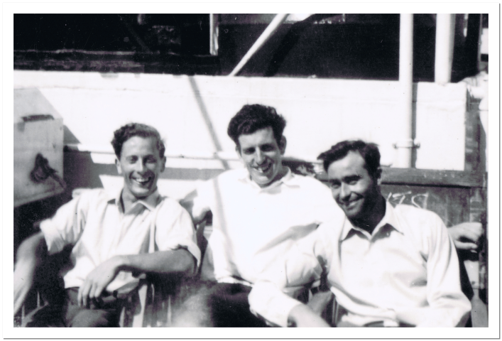 Jack with friends John Gallagher and Denis Coffey on the SS Captain Cook on route for New Zealand 1957.