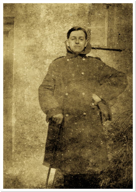 Referring to the last blog on the WW1 experience of Bertie Gillmor, the back of this photograph notes “Jack in Bertie’s Coat”. Jack was Bertie Gillmor’s younger brother, seen here posing in Bertie’s great coat, with his cap and walking cane. The photograph was taken at the rear of their home at Boihy following Bertie’s discharge from the Irish Guards in 1919.