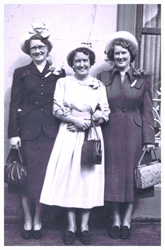 Martha and Lily doted on my brother Ivor and I. We looked like twins as they pushed us in buggies around the town, their friends stopping to admire our blond curly heads sticking out of the fur-lined hoods of our suits. Their mother Lizzie, my granny, was still alive then. I recall her as a severe woman with none of the laughter or fun of her daughters. Each of the girls had taken a trade, and probably worked for a short while in one of the town’s mills. When she was in her thirties Lily was found to have a serious heart condition and never worked outside her home again. Living as she did on the steep hill of Princess Street, neither did she walk it again. A few years later after another ’turn’, her doctor advised her to move her bedroom downstairs and strictly avoid anything strenuous. Preparing the Sunday dinner on Saturdays in a small dark scullery was the extent of her work. She rarely went out, not even to church.