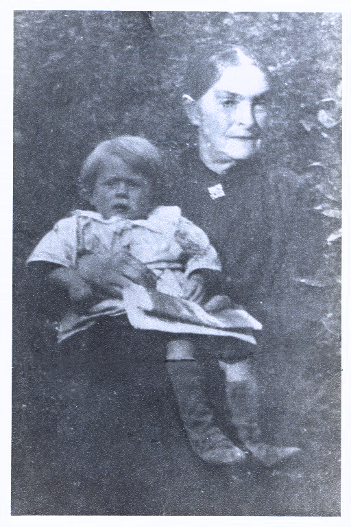 Ena Davis with her grandmother Margaret Eliza Gillmor, Boihy, Dromahair, c 1925.